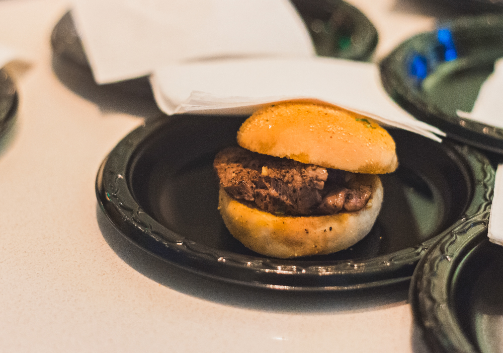 Ruth’s Chris Steakhouse hands out the yearly tasting of their steak sandwich with a toasted garlic bun. Photo: Talyn Sherer