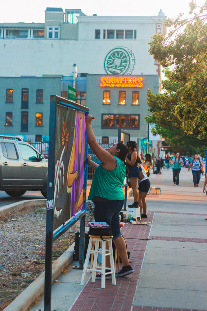 On the way to Squatters we get to enjoy the amazing artists at work who keep our city streets alive with color. Photo: Talyn Sherer