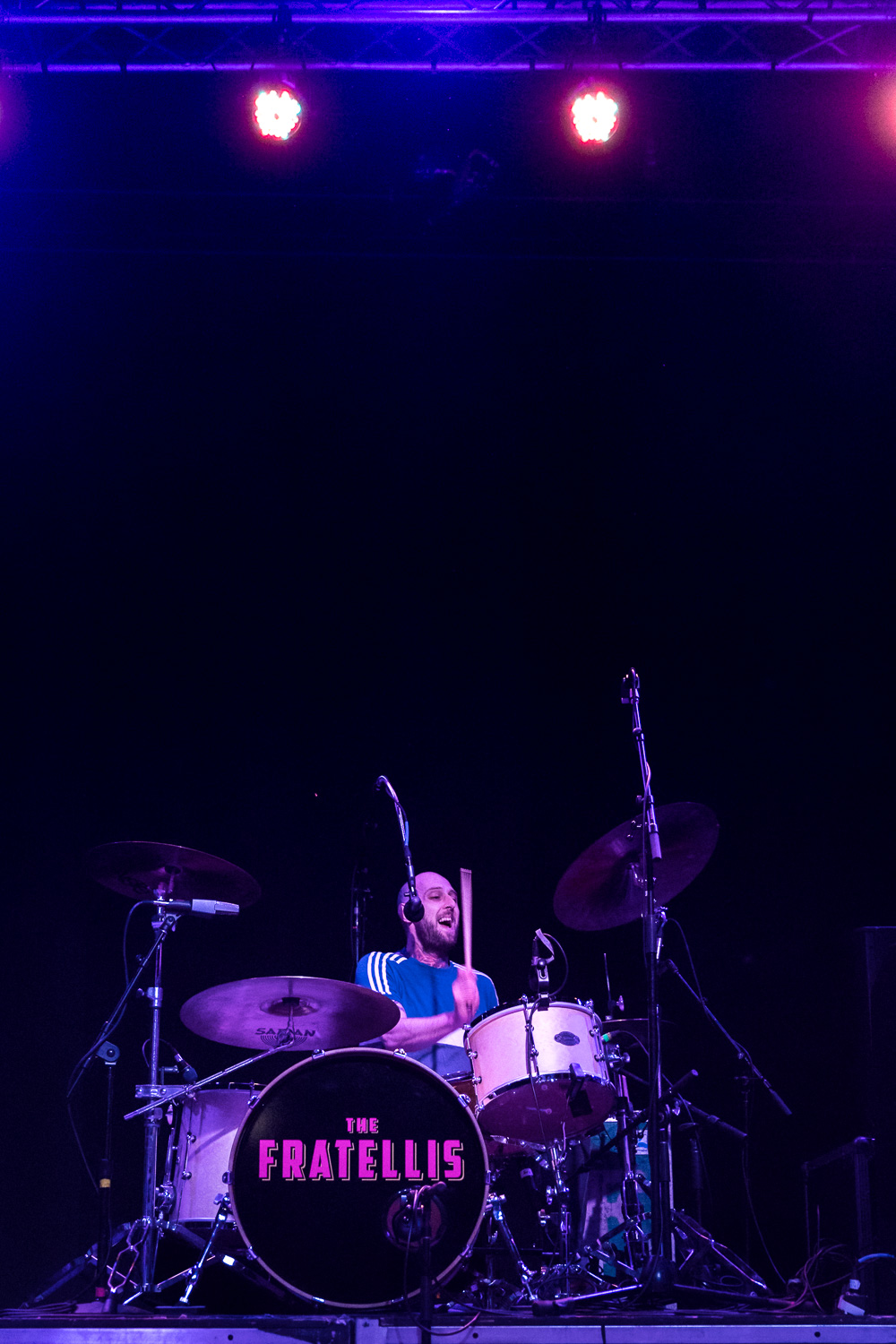 Now up is the infamous Fratelli family (Yes, that Fratelli family … although they’ve never seen The Goonies and are not actually related). The Fratellis took their spots onstage. Frontman and guitarist Jon Fratelli, Barry Fratelli on bass and backing vocals and Mince Fratelli on drums and backing vocals started off playing hits like “Henrietta,” adding some live performance alterations, changing up the tempo and playing around a little, to the crowd’s appreciation. Jon and Barry walk onstage while playing and Mince is all smiles as he hammers away, keeping the beat, playing newer tracks off the most recent Fratellis album, In Your Own Sweet Time. All throughout the performance, the crowd of friends and families are treated to a great variety of fun and great music that showcases the band’s range and growing transition over more than a decade.
