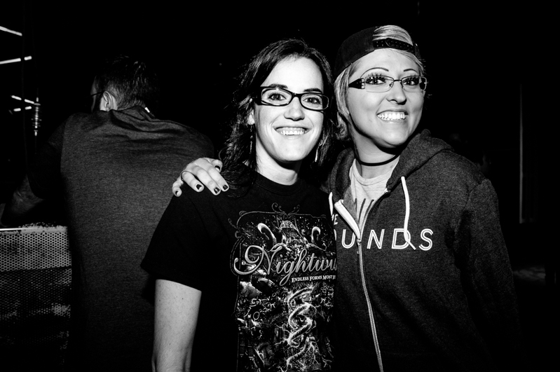 Jess and Courtney are excited for The Sounds to come on. Photo: Gilbert Cisneros