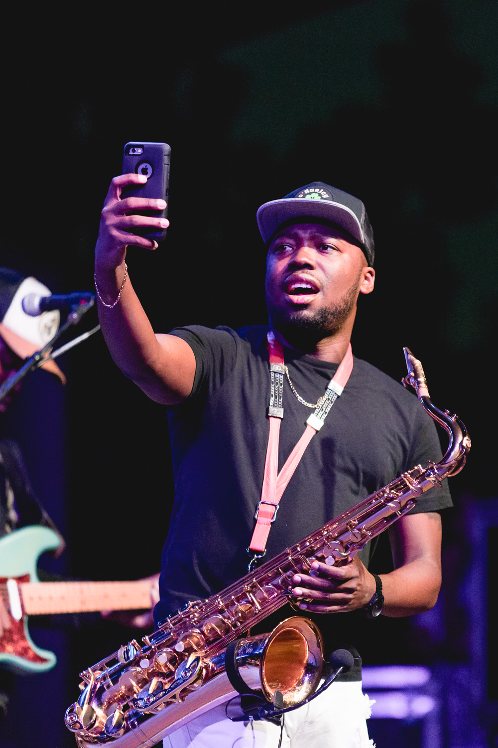 The energetic blend of funk, brass, hip-hop and jazz frees the audience members from their camping chairs, and with cups in hand, the crowd dances and sways to the rhythm. Sunglasses, smiles and note after note blast from the stage as Trombone Shorty takes over vocals with backup singers arriving in the back of the house. Hits like “Do to Me” and “Here Come the Girls” play on with welcome and impressive guitar, sax and other solo performances being highlighted throughout.