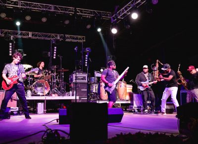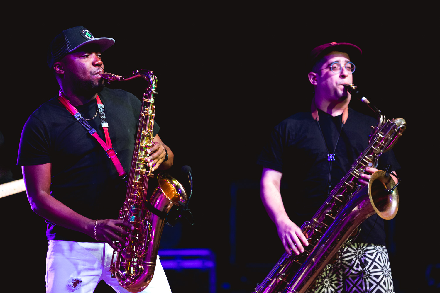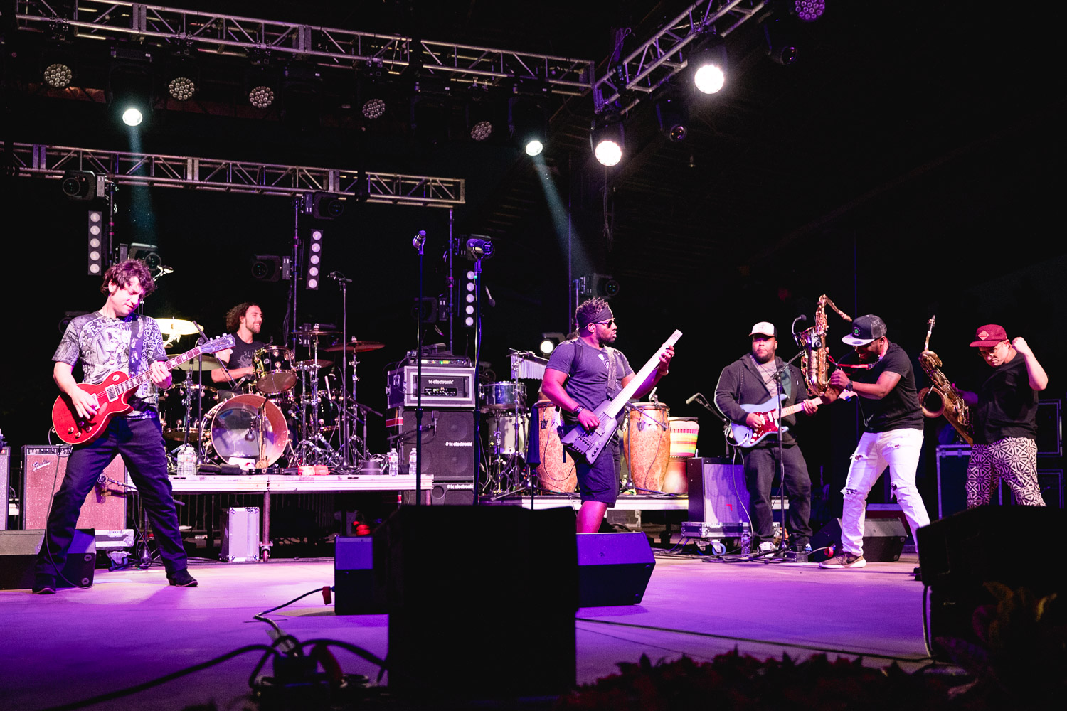 As the sun sets behind the tress on the nearby hills, the light goes down, but the music is only getting started. This New Orleans–based group is packed with talented musicians who visually enjoy both the music they create as well as playing it together. The only people who perhaps enjoy it more are the audience members who sway and shout their joy towards the stage.