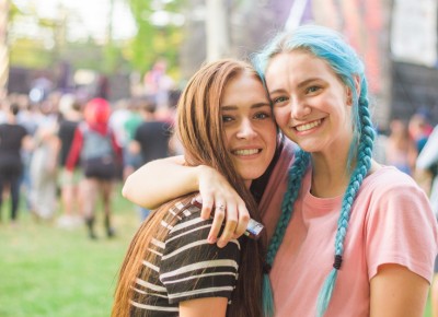 (L–R) Sisters Abigail Hogan and Brittany Goforth had the best hair in the whole damn park. Photo: Talyn Sherer