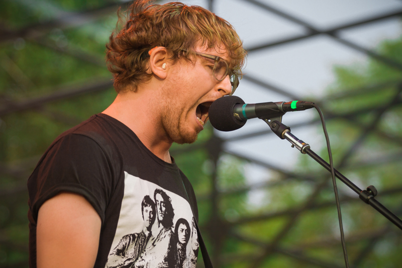 Alex Edkins of METZ prepares to engulf the microphone in one fell swoop as he tears up the stage with his mighty prowess. Photo: Talyn Sherer