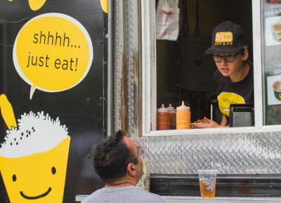 Everywhere you looked on Thursday night there were Cup Bop cups galore as fan after fan lined up to get a taste of this Korean delicacy of the gods. Photo: Talyn Sherer