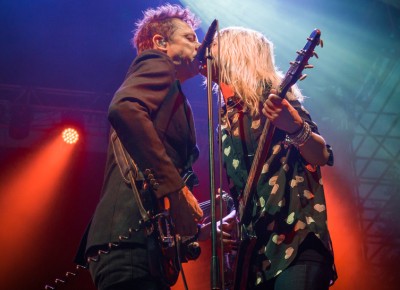 (L–R) Jamie “Hotel” Hince and Alison “VV” Mosshart of The Kills really know the power of sharing as they get close up on the mic. Photo: Talyn Sherer