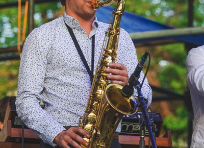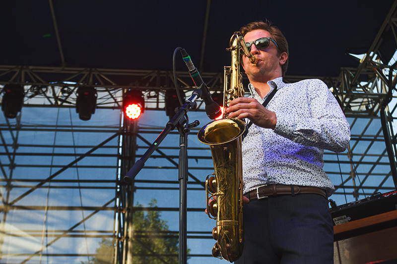 Leon Michels of Lee Fields & The Expressions came well equipped to entertain the masses of the Twilight Concert Series. Photo: Talyn Sherer
