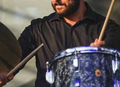 Homer Steinweiss of Lee Fields & The Expressions keeps a steady beat throughout the set. Photo: Talyn Sherer