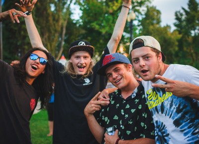 (L–R) SLUG skate competitors and street thrashers Sam Illu, Lucky Stables, Todd Haskew and Bridger Lambton were thrilled to get their photo taken for the magazine. Photo: Talyn Sherer
