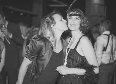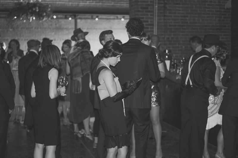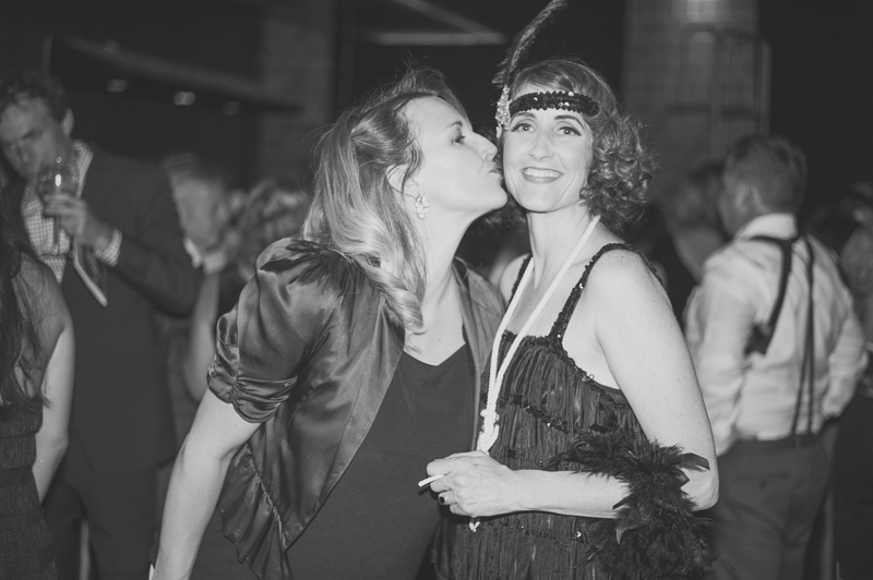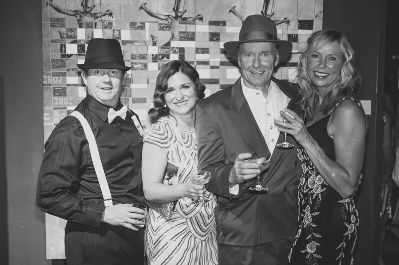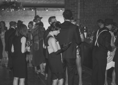 The UMOCA (Utah Museum of Contemporary Art) gala is one of the best yearly parties in Salt Lake City. The theme this year was “unprohibited”—1931 prohibition, in tribute to the year the institution was founded—and The Fallout was the perfect venue to channel a Chicago-basement speakeasy. Jazz hounds from across SLC might have arrived in Duesenbergs and Rolls (valet of course). Decked out in boas and boaters, feathers and fedoras, attendees chased the green light like they were Gatsby, gazing across the bay. Liquor and beer flowed from two bars while guys and dolls mingled and mock cigarette girls walked around with trays of peppermint stick candy called “Lucky Lights” and “Stallions.” Attendees were encouraged to attend wearing “ritzy underground” dress.