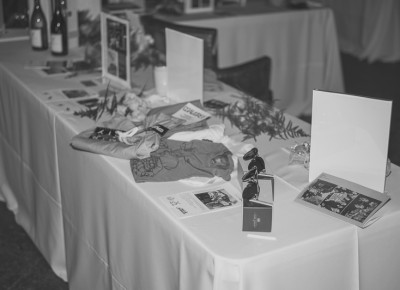 Attendees could bid on art and goods by local artists and purveyors. Photo: Tyson Call @clancycoop