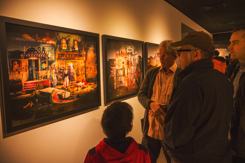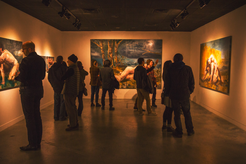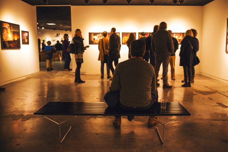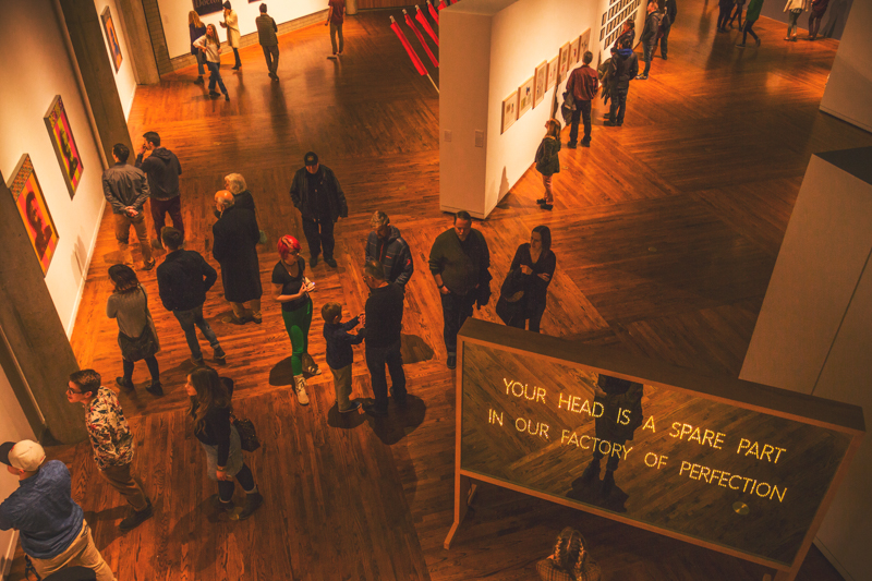 A bird’s-eye view of the UMOCA opening. The museum’s occupants provide a cohesive look at some of the many talents to grace the building during opening night. Photo: talynsherer.com