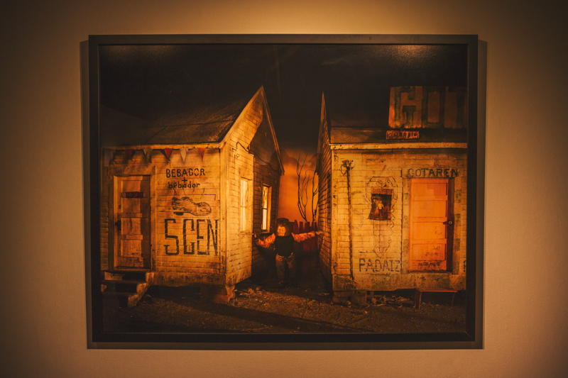 One of the larger prints from David Brothers depicts a wandering child caught between two homes. Photo: talynsherer.com