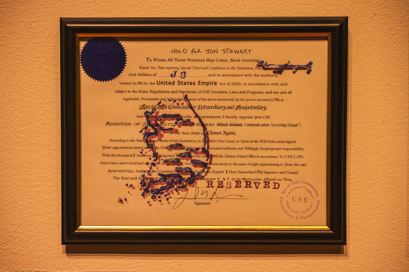 Dan Mills “USE Embassy Documents”dives into the political humor category to poke a bit of fun at the United States foreign policy. Photo: talynsherer.com