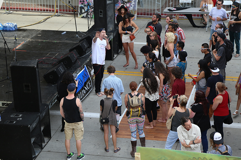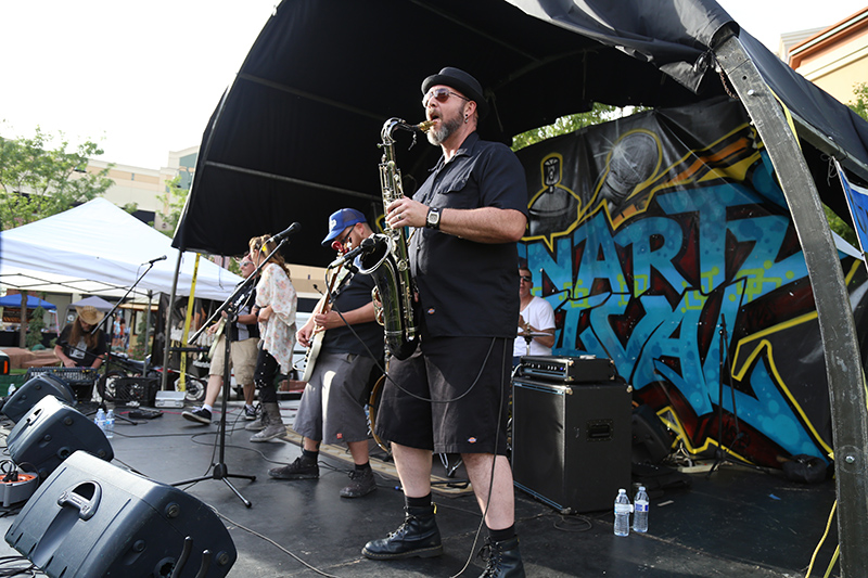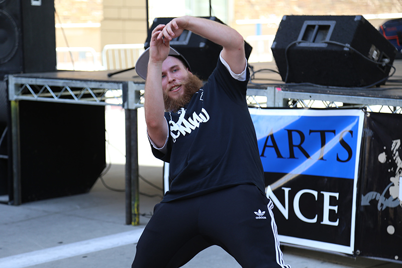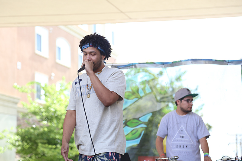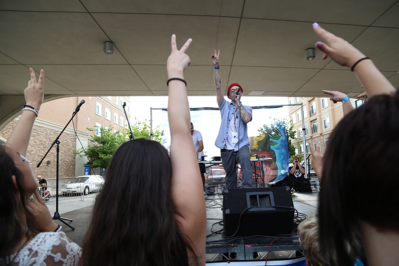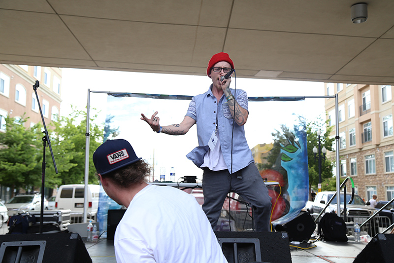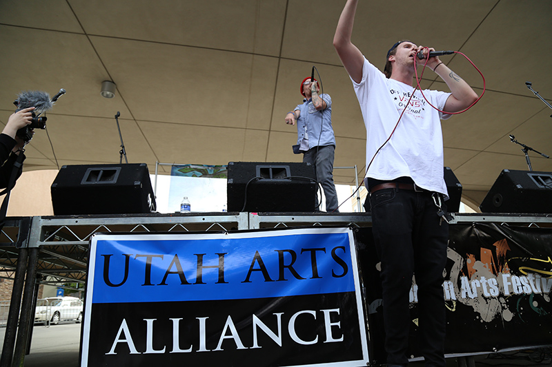 With the tall, adobe colored buildings of the Gateway looming over the narrow street, the Urban Arts Festival brought visitors more up close and personal with the artists. A hip hop stage showcased some of the best hip-hop Salt Lake City has to offer, displayed prominently in the center of the fest.