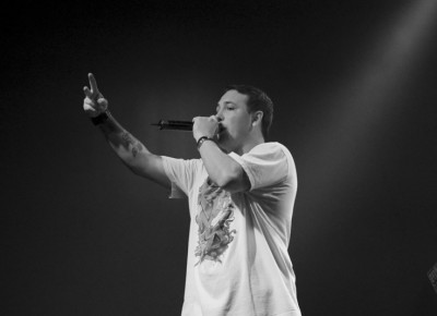 Dumb Luck raps to the crowd. Photo: Jayson Ross
