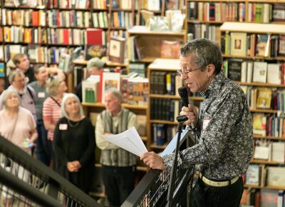 In his remarks at the event, Tony Weller described what it takes to make a bookstore thrive: “A bookstore requires a different mindset and staff than a warehouse. We were thoughtful in making this store an interesting and comfortable place to browse and our affection for it is great. We designed aisles and selected music to resemble the dynamism of minds reading. We hired booksellers who read a lot and understood the value of reading,” he said.