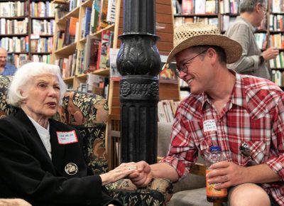 “What the fuck do you mean you’re in college, and you don’t want to learn?” Tony Weller said in frustration as he described an interaction with a misdirected youth. At the Weller Book Works 90th Anniversary Party, Weller obviously enjoyed bouncing from guest to guest as he shared anecdotes from his 47 years in the bookstore started by his grandfather, Gustav Weller. In 1929, Gustav started selling books in his junk shop and renamed it Zion’s Bookstore. It’s a bookstore that Tony’s father, Sam Weller, turned into a literary destination on Salt Lake City’s Main Street. Weller Book Works now fills two floors at Trolley Square, and it’s as vibrant and inviting as the family of booksellers who curate its staff recommendation shelves. Their site describes the entire history of Weller Book Works, and it’s well worth a read.