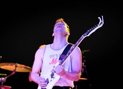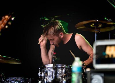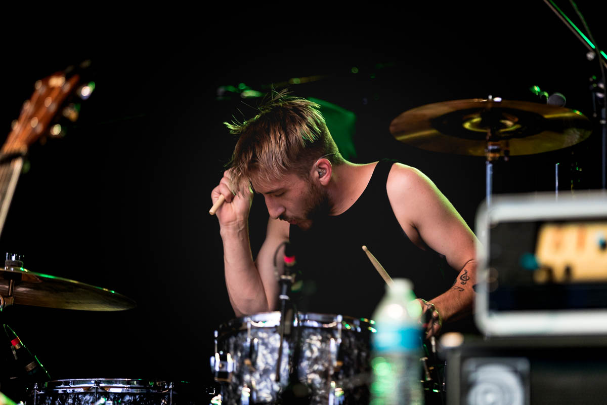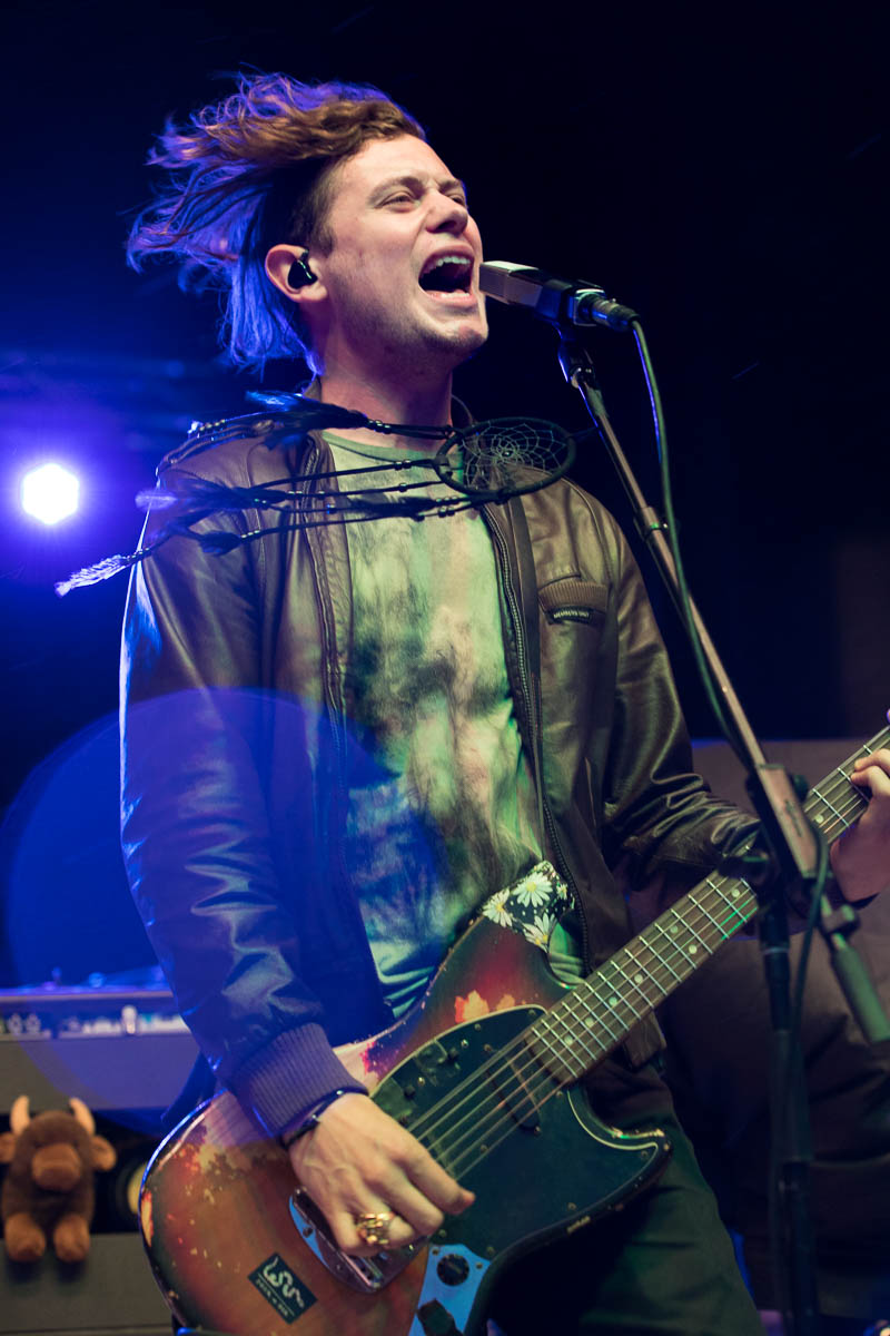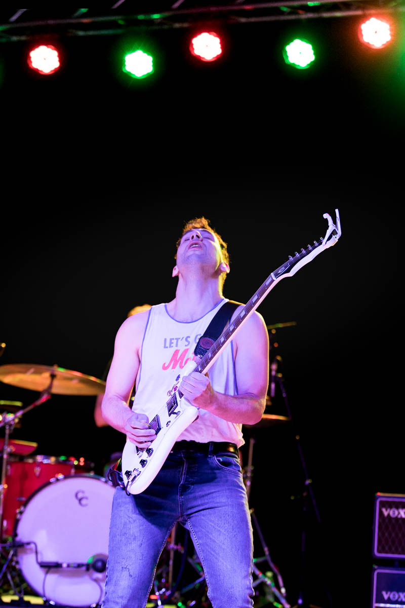 The second group of the evening was the makers of the popular “Sweet Disaster”: Dreamers. This three-person band consists of drummer Jacob Lee Wick, bassist Marc Nelson and lead singer and guitarist Nick Wold. Once the band gets going, they don’t stop, with tracks from their This Album Does Not Exist album, such as “Drugs,” “Wolves” and the greatly appreciated obligatory “Sweet Disaster.” This small group runs around stage, jumps off to give high-fives, or just stands still, hair-flipping and basking in the furious winds that had built up in the Downtown venue.