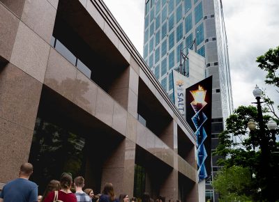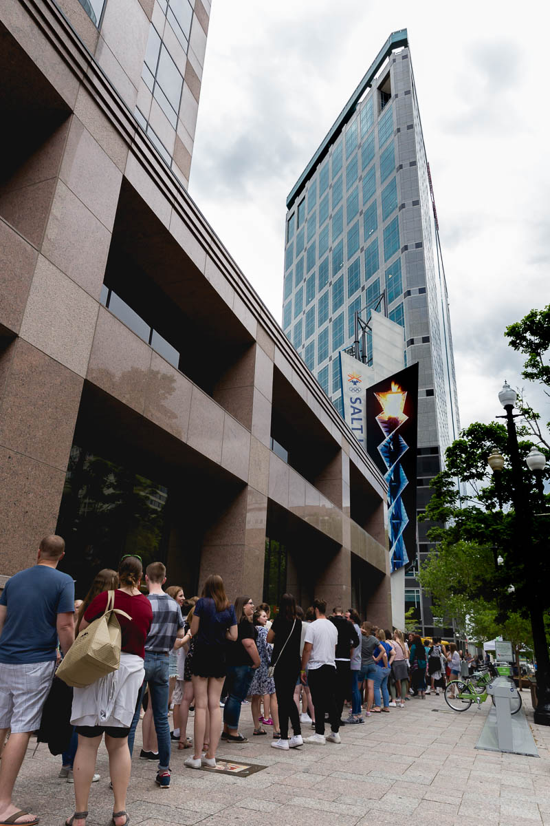Last was Bleachers, who took the stage one by one from the back of house. Frontman Jack Antonoff made his appearance to enthusiastic squeals and uproarious applause. With no further delay, Bleachers dove into the music. Antonoff, with a smile and stylish blue ’80s jacket, told the audience that they are the best fans in the country and that he’s remembered Salt Lake ever since he played at Kilby Court in the early 2000s. As the energy picked up up, the lights went down down both onstage and over the city as crowds of young fans jumped up and down screaming, “I love you Jack.”