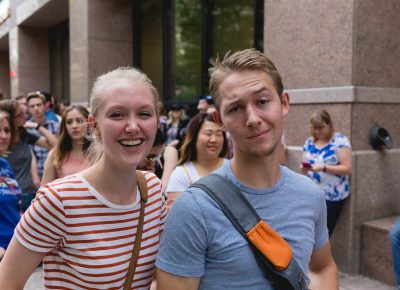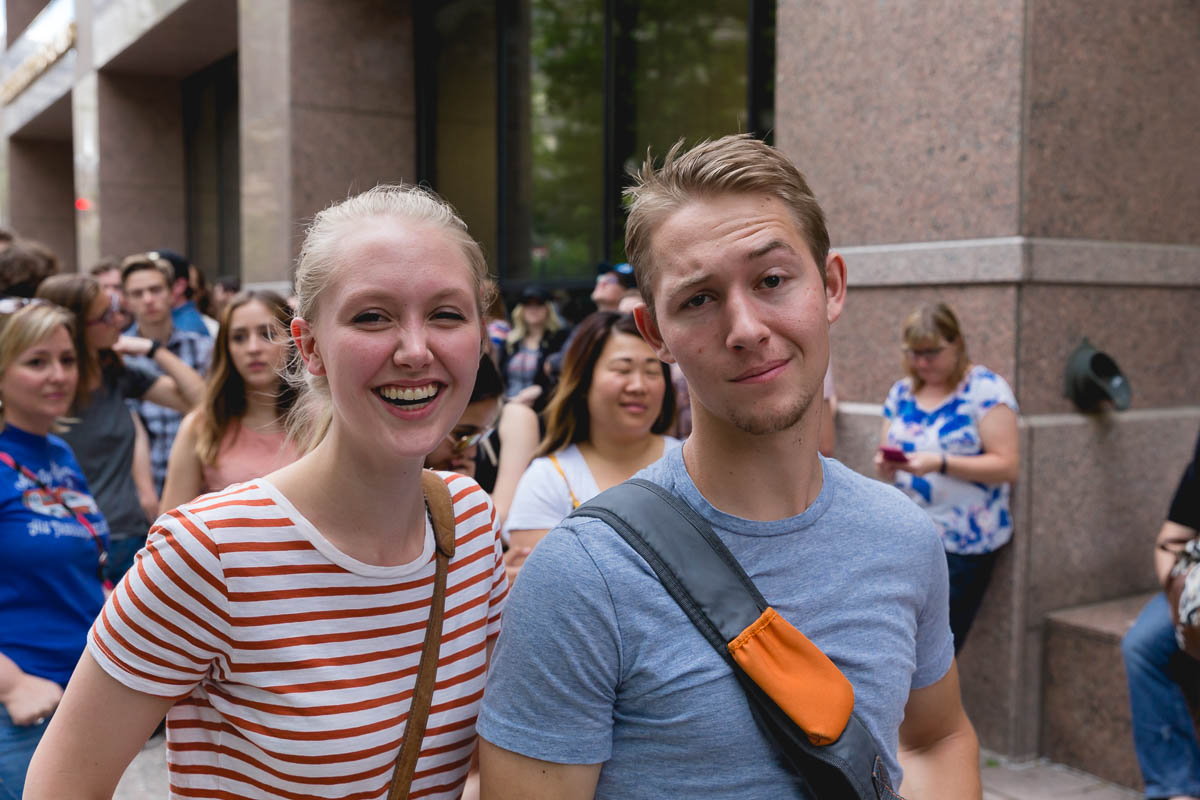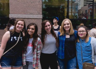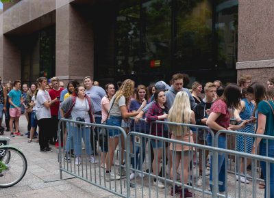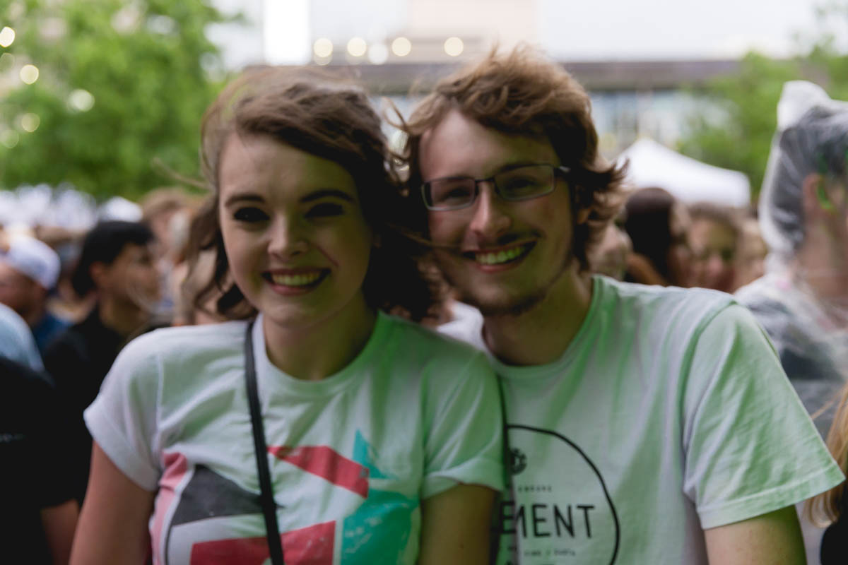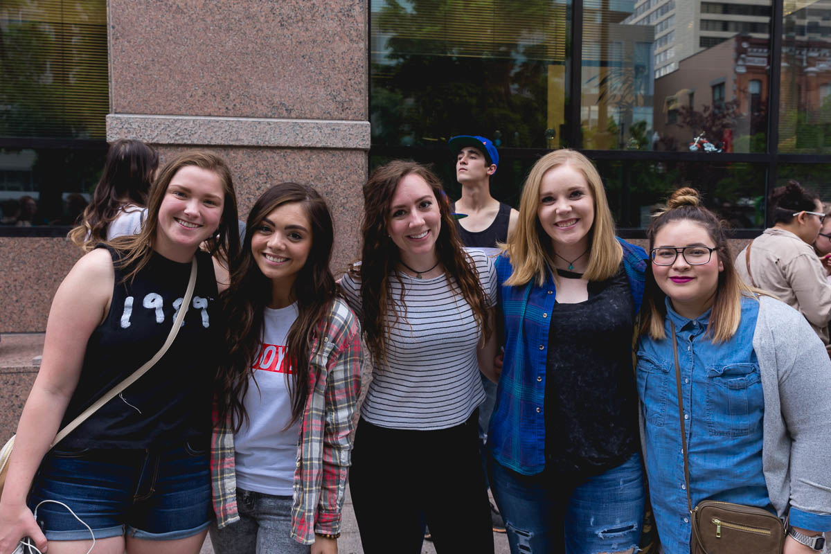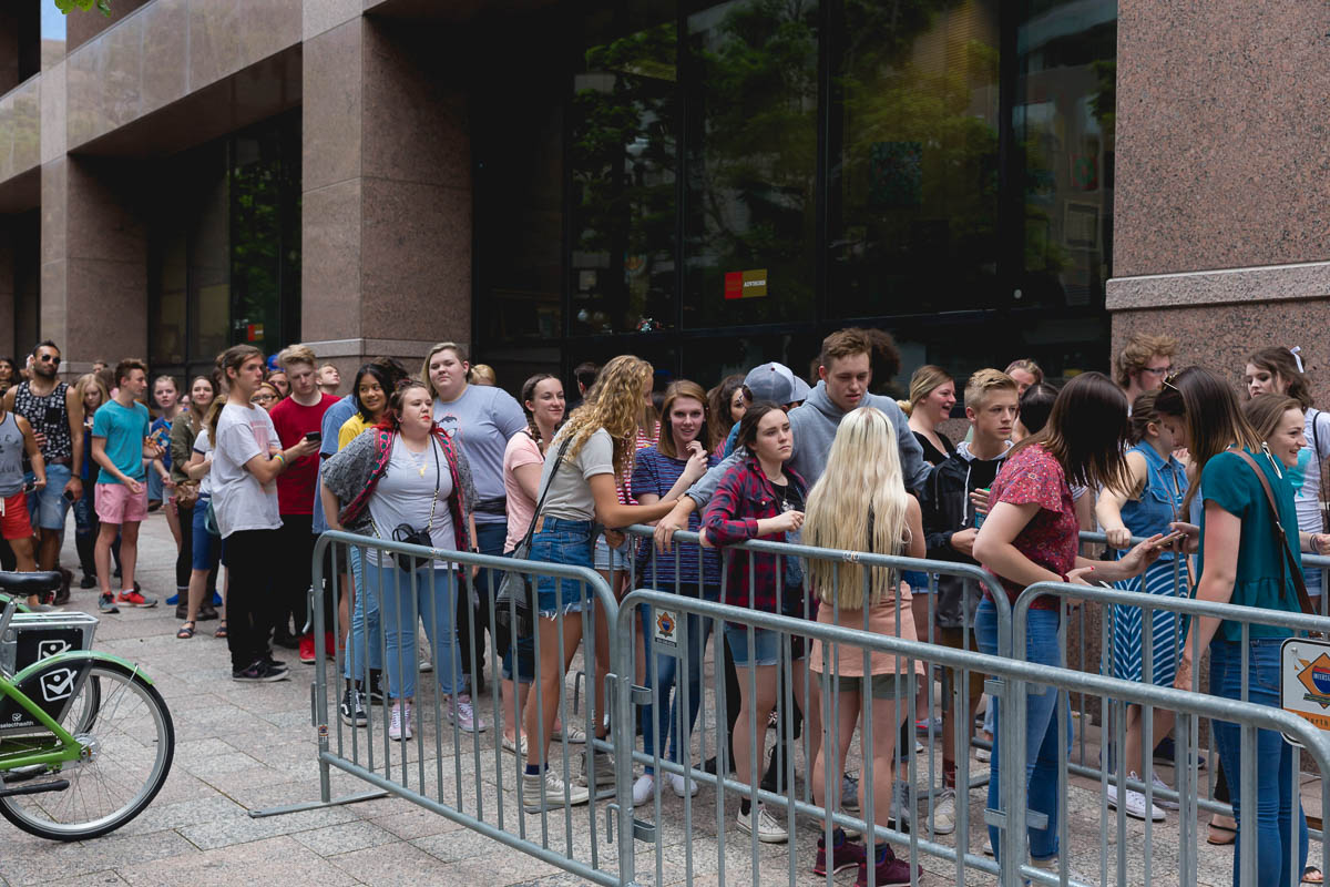 At the venue, lines stretched around the block as people waited anxiously to get into the plaza to secure their spot at the front of the barricades. Once inside, people are able to get a burger, some merchandise or even a beer (for the 21-plus attendees). With most of the young crowd positioned and droplets becoming more regular and anticipation rises as the time passes, everyone was ready for music.