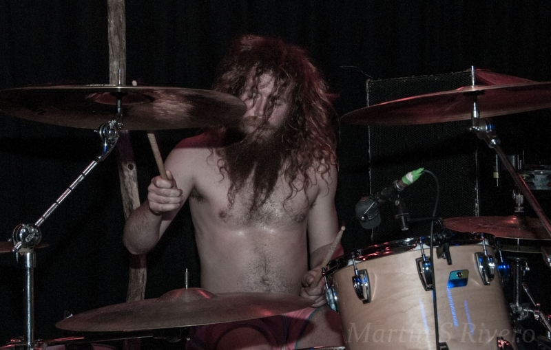 By the time I arrived, Richmond Virginia’s Inter Arma was already onstage and owning the audience’s collective ear. What immediately captured my notice was the unexpected clarity of the sound. While I expect murky, fungal tones from sludge metal acts, Urban Lounge’s new sound system offered a crisp group portrait of the band and a discrete profile of individual instruments. I could easily distinguish the analogue breakup of each amplifier, as well as the actual grain and words of the vocals. So eerie-clean, in fact, was the sound, that I wondered for a moment if some of it wasn’t pre-programmed whiz-bang. But the band’s sweat-soaked and hair-plastering performance soon convinced me that this was all really happening.