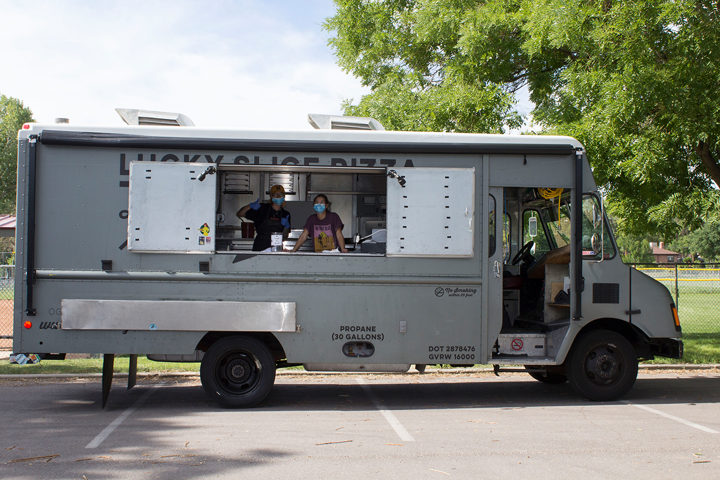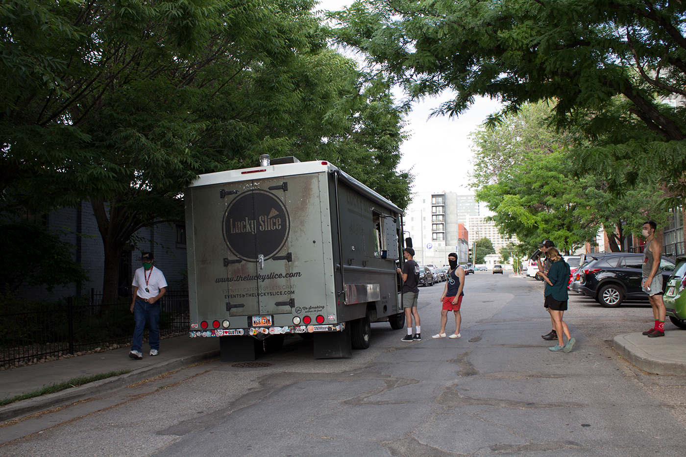 The crew behind the Lucky Slice Pizza counter came prepared with the good stuff.
