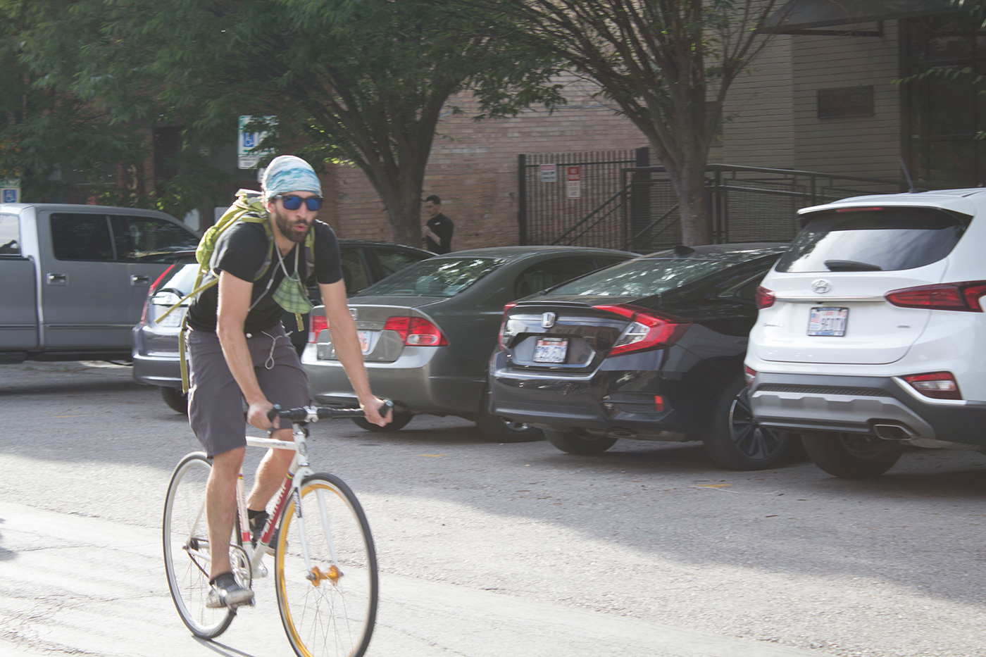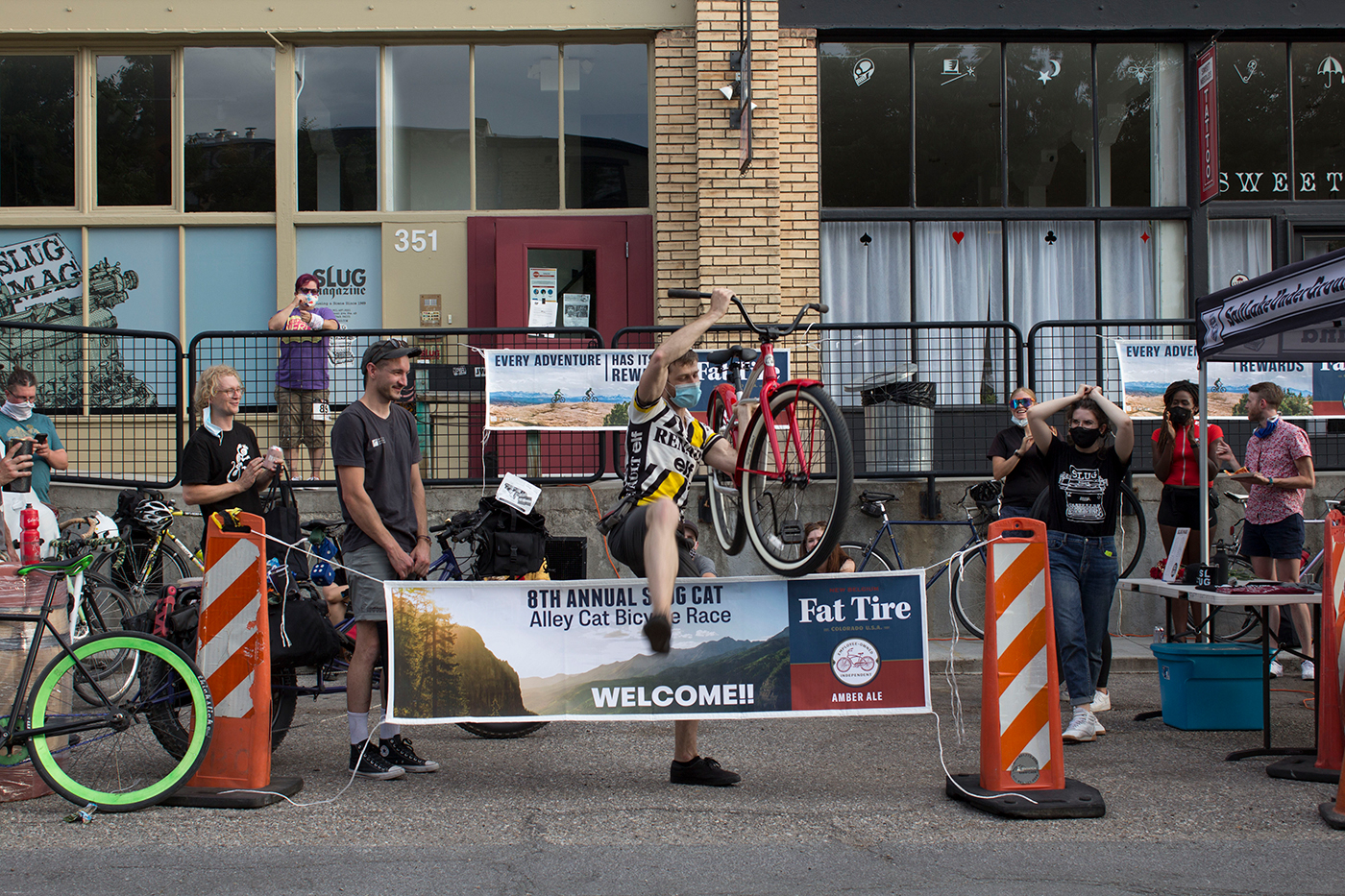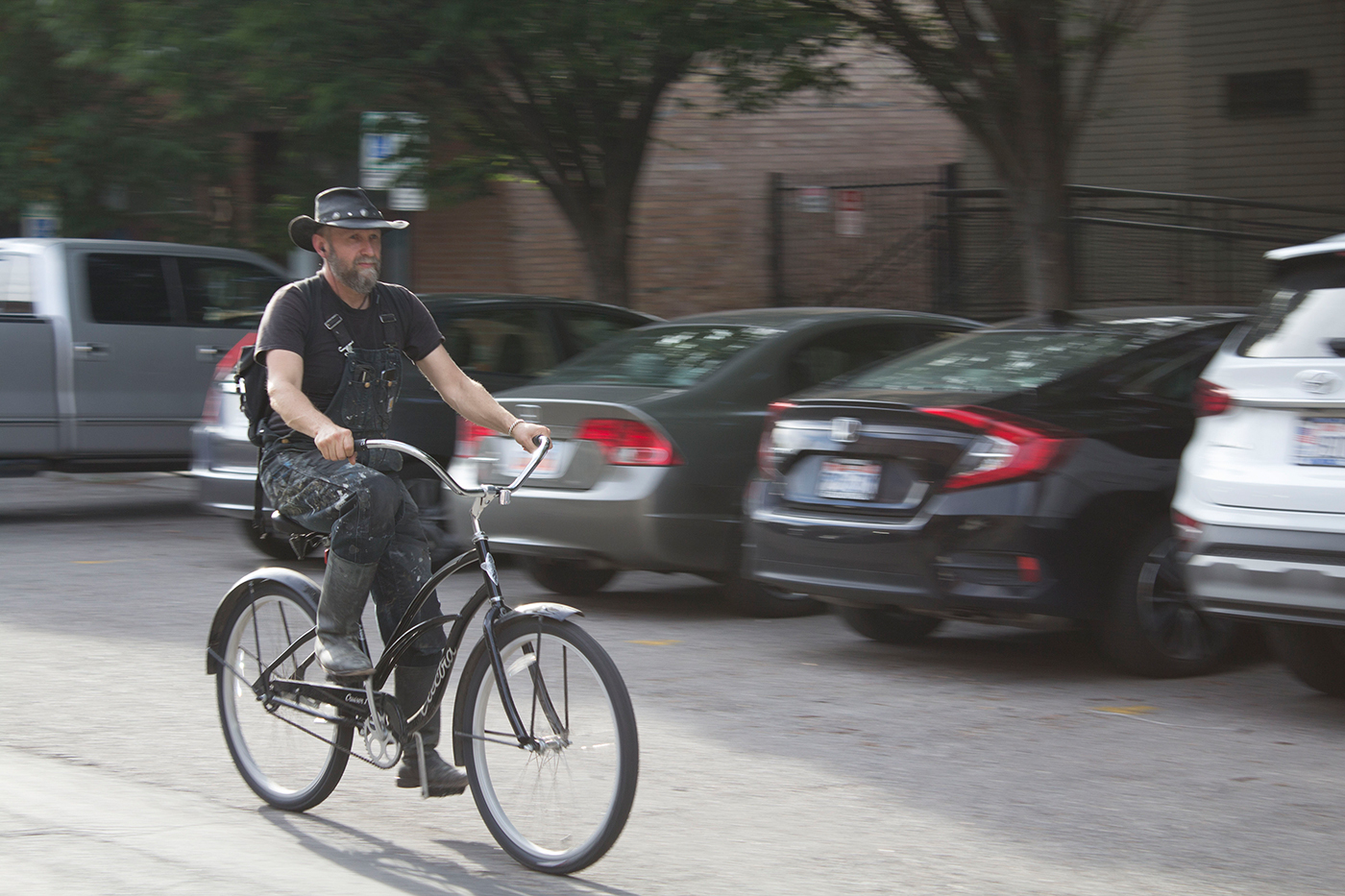 Joseph Williams, of Dead Fucking Last award-winning fame, peddles home after the 8th Annual SLUG Cat.