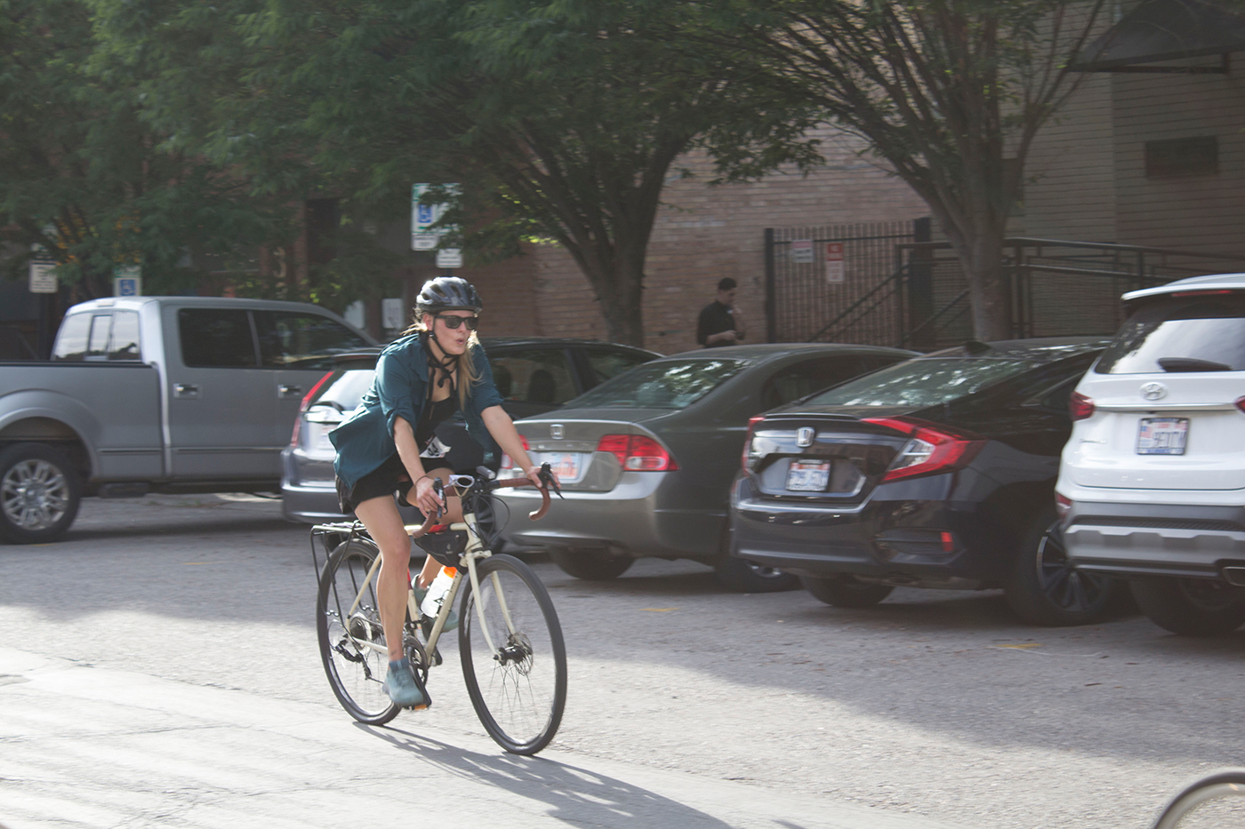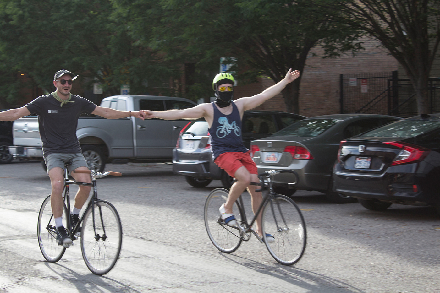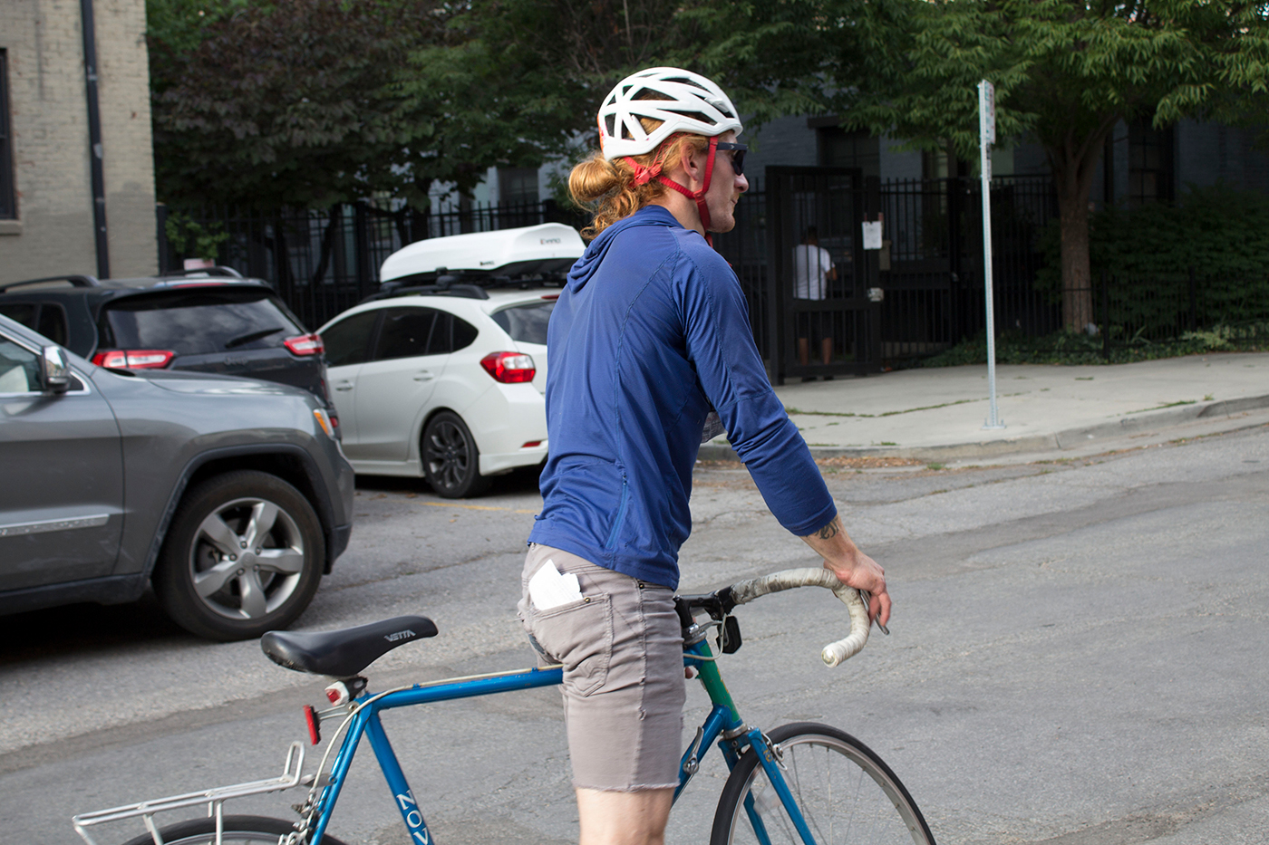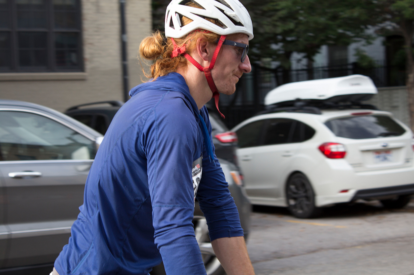 Joseph Williams, of Dead Fucking Last award-winning fame, peddles home after the 8th Annual SLUG Cat.