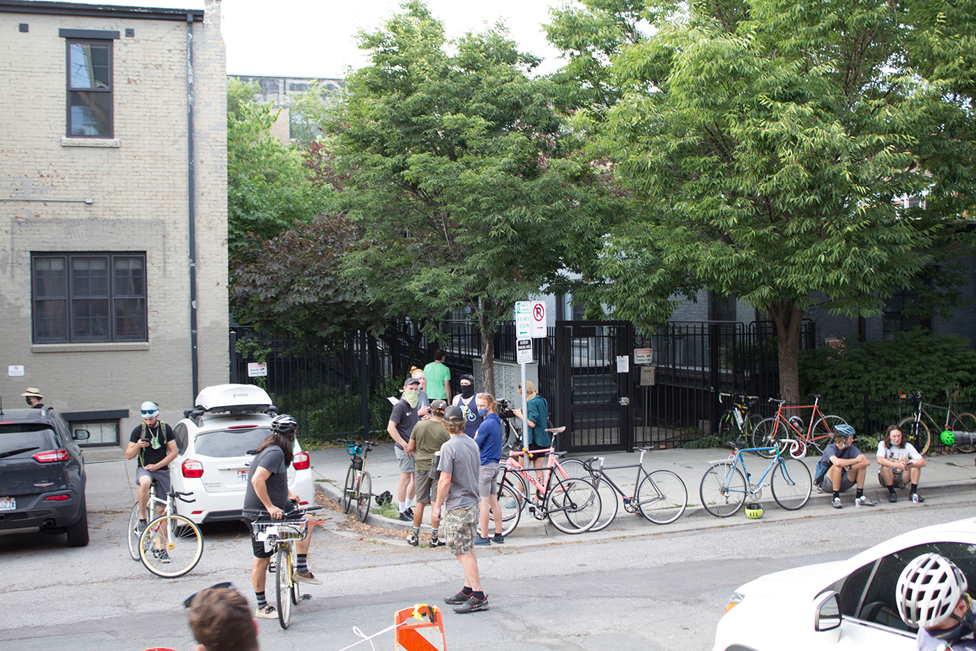 Riders gather around as the SLUG Cat festivities reach their peak.