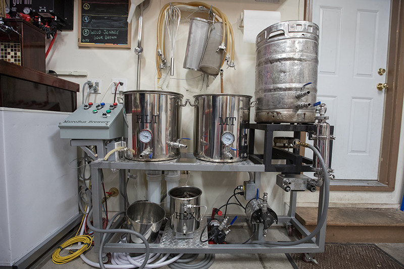 As a lot of home brewers do when they’re first starting out, I was extract brewing using dry and liquid malt extract. Not long after that, I started steeping specialty grains along with the extract. Next was partial mash batches. I was really enjoying the hobby, so I started making plans to jump to all-grain brewing. I think it was about a year or so after switching to all-grain that I designed and built my mostly-automated HERMS system using a BCS-460 process controller. This was before the “discovery” of the Brew In A Bag (BIAB) method, so I designed a four vessel system consisting of a Hot Liquor Tun, Mash/Lauter Tun, standalone Heat Exchanger and Boil Kettle. My system works great, but if I were to do it all over again, I’d probably go the BIAB route, as there’s a lot less equipment involved.