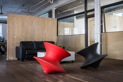As I walked in, my eyes immediately caught a front office, colorful in its decoration and looking as if it could double as a meditation room with its comfy, low ceiling and atmospheric music pumping through the enclosing glass. When I walked up to the room, I was greeted by Mo Reeder, the V School co-founder who enthusiastically welcomed me with a handshake and the offering of a beer (always a good way to welcome me).